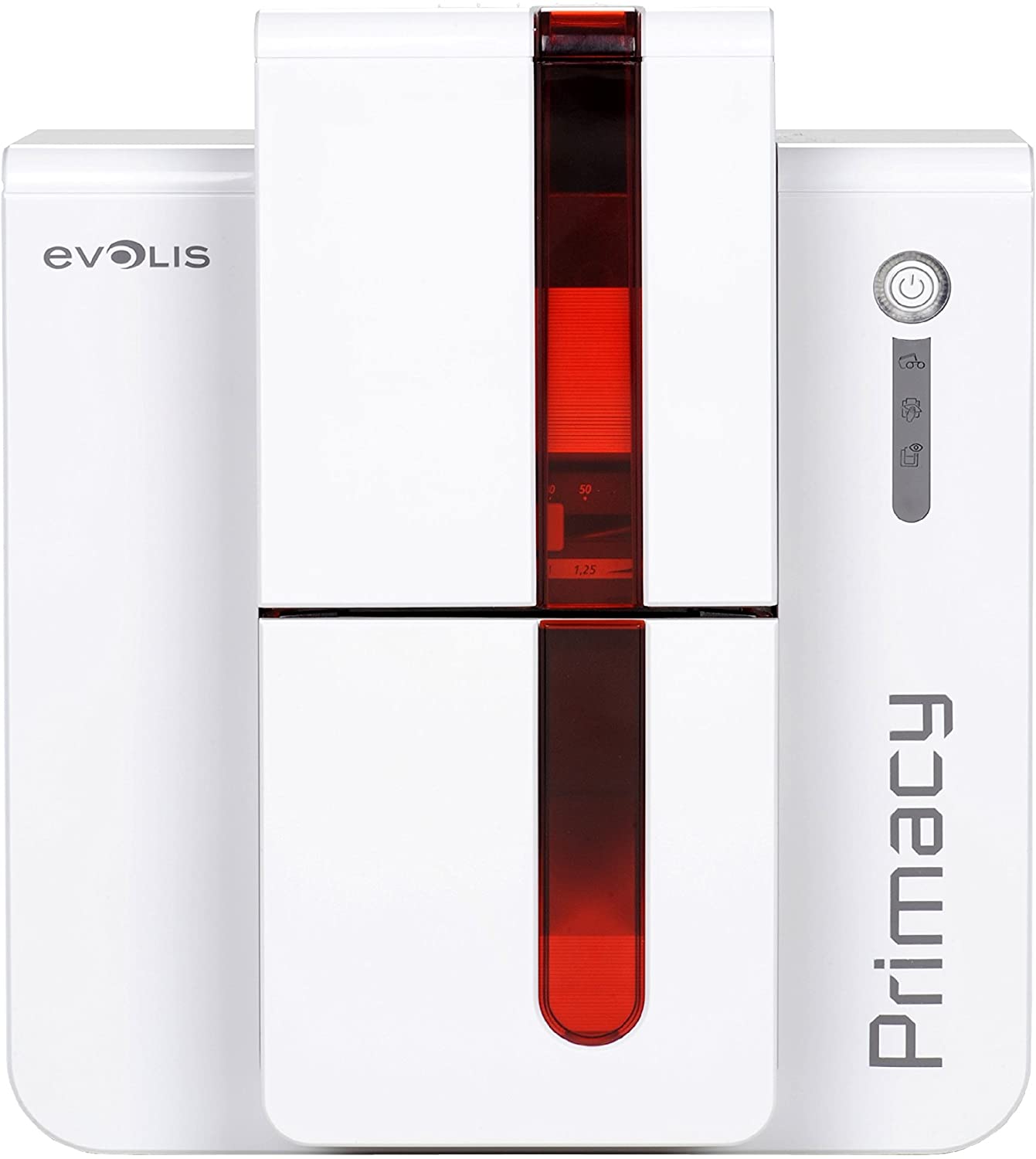 Gran capacidad, su alimentador de tarjetas (100 piezas) evita tener que recargar con frecuencia la impresora. Primacy ofrece así un ahorro de espacio y flexibilidad en sitios muy reducidos. Inversión duradera Primacy se beneficia de la experiencia y del control de calidad probado de Evolis. Le garantiza un funcionamiento óptimo y un resultado perfecto a través de los años.